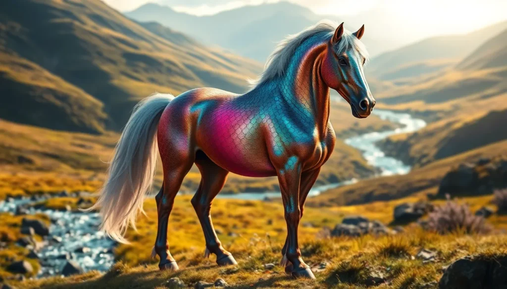 So, what does a halfhorsedre look like? It embodies the powerful, agile physique of a horse, adorned with mystical features that set it apart. Imagine a striking blend of iridescent scales weaving through velvety fur, reflecting the light like a prism. Its stature is magnificent, boasting a robust frame that can carry great burdens. The intricate markings or colors on its body often signify its origin or the traits of the realm it represents. This unique appearance not only captivates the eye but also invokes a sense of wonder about its nature.